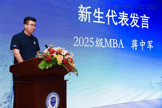 第二十四届MBA联合会执行主席何世亮作为在校生代表发言。他结合自己在天大MBA项目中的学习与成长经历,分享了如何在课程学习、实践锻炼与校园文化中实现自我突破的宝贵经验。并鼓励新同学们积极融入校园生活,主动参与各类活动,拓展视野、提升领导力,为未来的职业发展奠定坚实基础。他的话语真挚而有力,为新同学们注入了前行的勇气与信心。