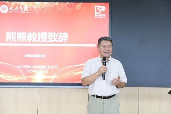 熊熊教授首先对与会的校友和专家表示欢迎与感谢,他提到,天大金融经过十五年的发展,不仅培养了一批优秀学者提高了学界的影响,更在服务国家重大战略方面做出了重要贡献。熊熊教授提到,希望校友们常回学部看看,关注学部的新变化、新发展,让经管人美好品质届届相传。