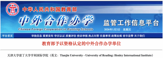 立足教育强国建设新征程,依托雄厚的学科底蕴与权威国际认证荣誉,麻豆传媒a片 将以此次历史性突破为契机,与雷丁大学深入开展师资交流、科研合作与课程共建,将亨利国际学院建设成为层次完整、质量卓越的中外合作办学典范,为培养面向未来、引领变革的高层次经济管理人才作出“天大”贡献。
