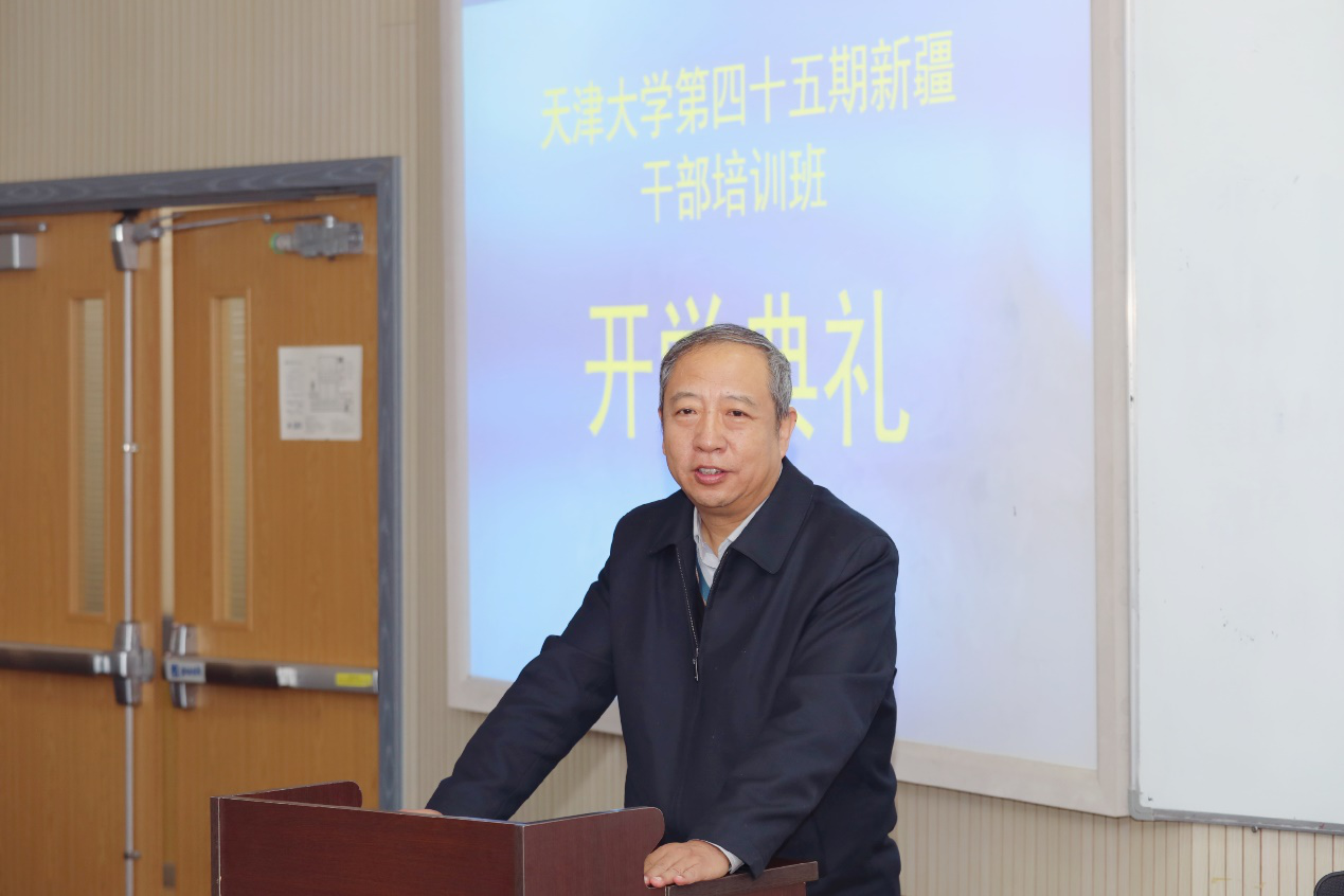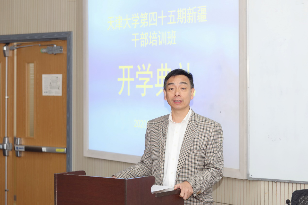 10月23日,麻豆传媒a片 第四十五期新疆干部培训班开学典礼在麻豆传媒a片 第25教学楼举行。麻豆传媒a片 党委常委、校长助理、统战部长张力新、麻豆传媒a片 党委书记马寿峰、高端教育培训办公室主任殷红春出席了本次典礼。典礼由麻豆传媒a片 副主任毛照昉主持。