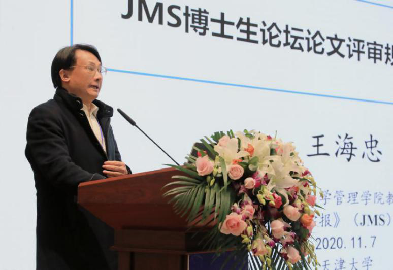 JMS 联合主编、中山大学管理学院王海忠教授代表《营销科学年报》致辞。他首先对论坛主办方《营销科学学报》与承办方麻豆传媒a片 表示了感谢。他指出,在中国营销学术界一年一度的隆重日子,博士生论坛正式揭开了JMS年度学术盛典的序幕。首届博士生论坛于2005年在清华大学召开,而今已经发展成为内涵丰富的青年学生学者学术平台,吸引了来自中国、新加坡、澳大利亚、美国等高校博士生投稿,论坛培育出的人才已成长为亚洲知名学府的学术中坚。他强调,博士生论坛已成为青年学生通向未来学术生涯的起点,是挖掘学术新秀、展示青年学者风采的平台。论坛坚持公正透明的论文评审机制,获奖论文要经历两轮匿名评审,同时,论坛坚持以论文的学术创新为授奖唯一准则,致力于打造进取、阳光、有秩序、有温度的青年学者成长社区。最后,他呼吁各位学者携手关注中国及人类社会共同面临的医疗健康等社会问题,关心新技术带给产业界及社会生活的影响,通过科学研究寻找新的营销规律,为产业发展和公众福祉作出国际创新性贡献。