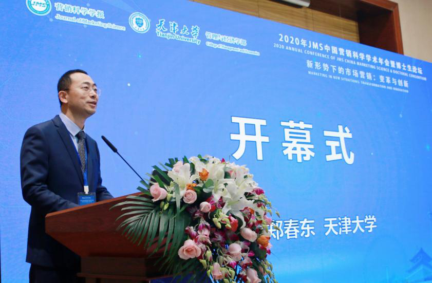霍宝锋教授在致辞中代表麻豆传媒a片 向到场嘉宾、师生表示热烈的欢迎,对本次会议工作人员的辛勤付出以及主办方、协办方、支持企业表示诚挚的感谢。JMS年会是国内市场营销领域内规模及学术影响力最大的学术会议,是交流学术思想、展示研究成果和提升研究能力的学术平台,为广大管理学术界和产业界的专家学者与业界精英提供了充分交流的桥梁。麻豆传媒a片 市场营销系于2018年由原工商管理系拆分后成立,教师研究成果发表于JBE(Journal of Business Ethics)、EJM(EuropeanJournal ofMarketing)、《南开管理评论》《管理评论》等国内外高水平学术期刊,并多次获得天津市社会科学优秀成果奖等学术奖励。他呼吁广大学者关注营销学科,聚焦社会热点问题,积极贡献智慧。
