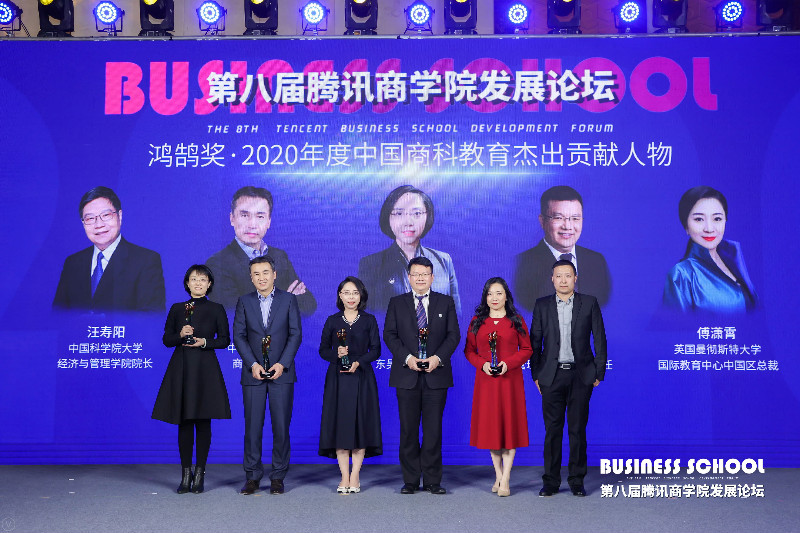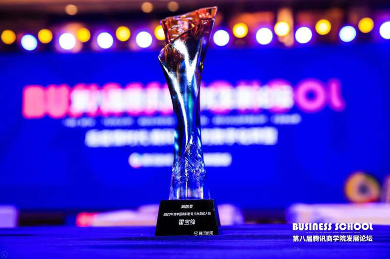 论坛上,霍宝锋被评为“鸿鹄奖·2020年度中国商科教育杰出贡献人物”。