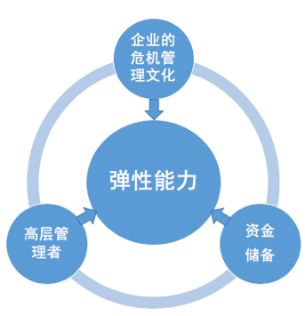 如何帮助企业构建弹性能力呢?我们认为企业构建弹性能力需要依靠于充足的事前储备。总体的本文认为企业的事前储备包括三个主要部分:危机管理文化、高层管理者应对危机能力和应对危机资源储备。