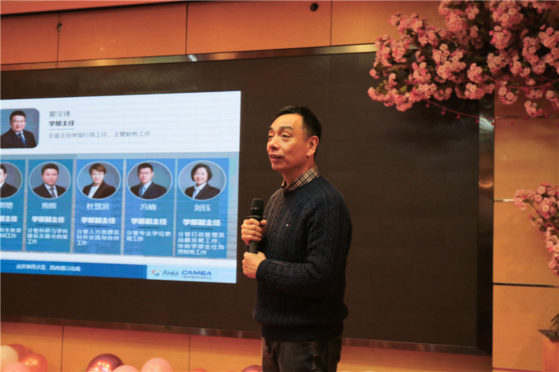 马寿峰代表学部发表新年寄语,向离退休教师致以节日的祝福,向各位的辛勤付出表示诚挚的感谢。他强调,正是各位老师的辛勤付出奠定了学部扎实的发展基础。马寿峰向大家介绍了学部领导班子及分工情况,并表示,希望各位离退休教师持续关注、帮助、支持学部事业发展,注重文化传承,配合在职教师挖掘学部优良历史,关爱青年教师、青年学生的成长。