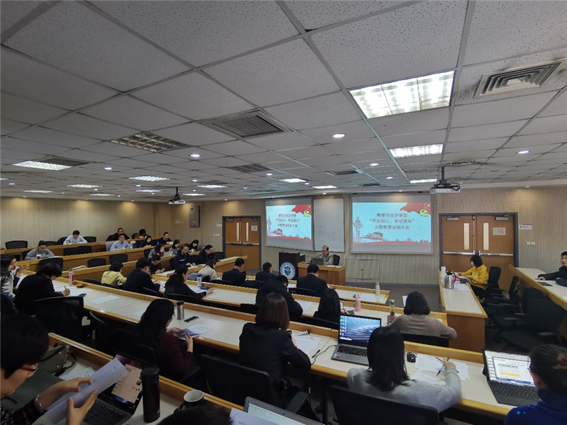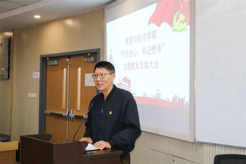 接下来,马寿峰从学习教育、调查研究、检视问题、落实整改四个方面对学部主题教育工作取得的阶段性成果进行全面总结,3个多月的主题教育,学部累计开展中心组集体研讨会7次,各支部学习研讨60余次,组织“理论大讲堂”4期;注重先进典型教育,通过选树“经管榜样”、感悟太雷精神等活动,致敬榜样,学习典型;结合经管特色,开展多层次“结对共建”,加强师生共建共享,注重与企业的联络学习,开展活动25次;扎实做好调查研究,撰写调研报告12篇;全面进行检视问题,推动整改落实,查摆问题25条、制定整改措施49项。同时,马书记对学部持续深入开展主题教育提出了更高要求:一是学习教育要再加温,二是整改落实要再加压,三是制度建设再加强。