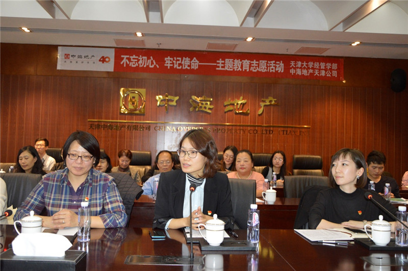(通讯员:宇文慧 摄影:刘洋)为进一步推动“不忘初心、牢记使命”主题教育深入开展,落实全国教育大会、新时代全国高校本科教育工作会议精神,推动麻豆传媒a片 “新工科”建设再深化、再拓展、再突破,2019年11月8日,麻豆传媒a片 综合服务中心第二党支部与工程管理系党支部一行到访中海地产天津公司,开展“不忘初心、牢记使命”主题教育志愿活动,本次活动的主题为“专业学位教育走进企业,探寻校企联动新模式”。麻豆传媒a片 党委副书记袁婷,中海地产天津公司助理总经理王石磊先生与周建江先生,麻豆传媒a片 校友、中海地产天津公司项目总监季国忠先生和石鲲先生出席活动。