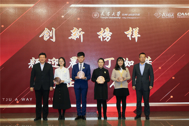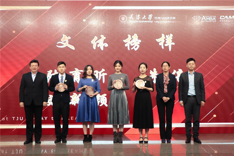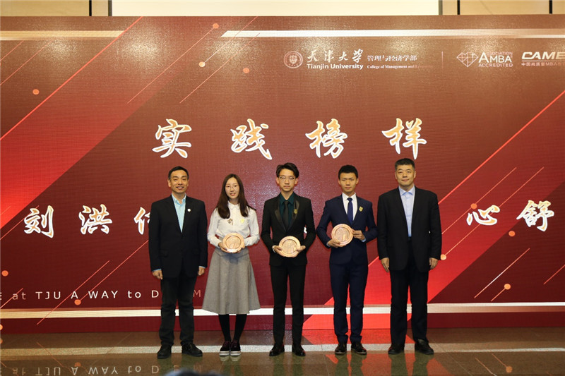 2003级博士校友、天津证监局纪委副书记、学部业界导师谢靖宇,2003级本科校友、浦发银行浦安支行行长、学部业界导师袁丁,2007级MBA校友、天津科技金融中心主任、天津锐意津融企业管理咨询有限公司董事长、学部业界导师何勇军,2010级EMBA校友、天津京创源装饰工程有限公司总经理、麻豆传媒a片 EMBA校友会会长陈林,2011级EMBA校友、浙江宝业集团副总经理、学部业界导师童元明,天津贵金属交易所有限公司人力资源部副总经理、业界导师熊卫华,中国建筑六局人力资源部(干部人事部)副总经理、业界导师鱼洪文;麻豆传媒a片 党委书记马寿峰,主任霍宝锋,党委副书记袁婷、李庚,副主任杨宝臣、冯楠、刘钰出席了本次颁奖礼。