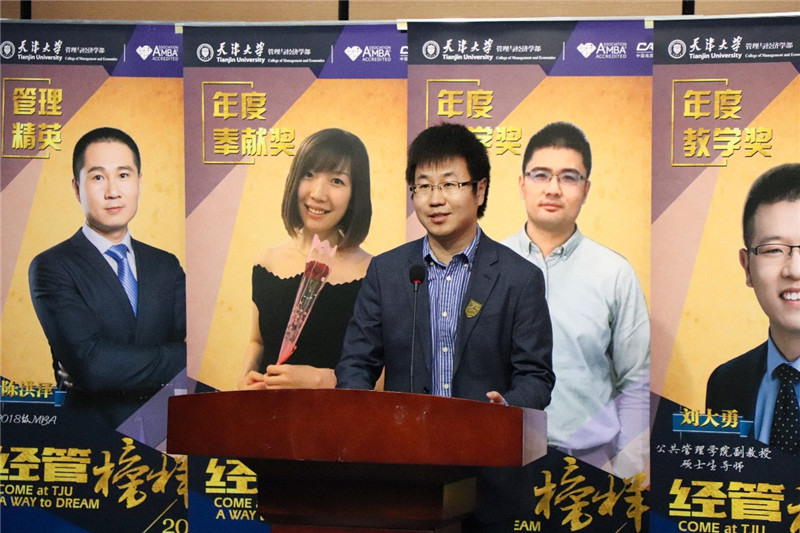 刘大勇在获奖感言中,感谢学部对青年教师在教学中努力投入的鼓励与领导老师们的指点帮助,并表示向天大经管的前辈教师们努力学习做一名合格的好老师。他提到,“在知识信息快速更迭与不断交叉整合的今天,自己面对讲台始终心怀敬畏和谦卑,面对勤奋且充满潜力的同学们,希望帮大家掌握构建知识体系和分析问题的方法,教学相长,用真诚、勤恳与执着努力为学部发展贡献力量。”