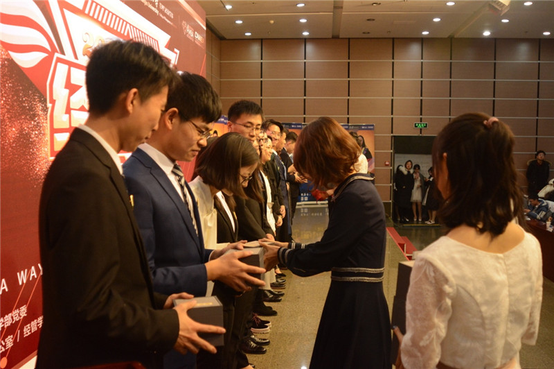 陈林、袁婷共同为2019年度“经管榜样”颁发生肖瓷器纪念品。纪念品由陈林校友捐赠,寓意深厚,不仅寄托了他对同学们的美好祝福,还传递了经管人的厚重情谊。陈林作为麻豆传媒a片 EMBA校友会会长,热烈欢迎同学们加入校友会大家庭,正所谓“海阔凭鱼跃,天高任鸟飞”,他寄语同学们在未来的人生舞台上大显身手、大展宏图。