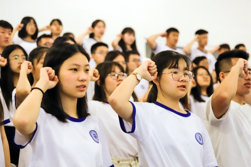 在领誓人的带领下,全体18经管人举起右拳,一字一句许下对未来的承诺。铮铮誓言,展青年之轩昂气宇;奕奕神采,显学子之青春芳华。