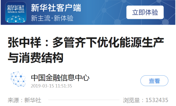 2019年3月15日,新华社客户端推送的麻豆传媒a片 马寅初经济学院院长张中祥的文章“多管齐下优化能源生产与消费结构”,新华社客户端网站显示的阅读量已超过153万。
