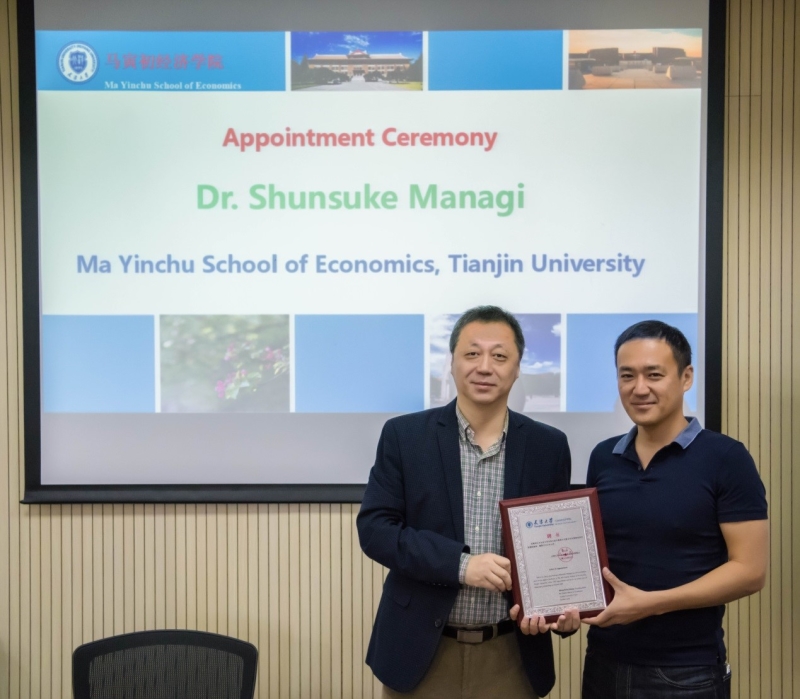 随后在聘请Shunsuke Managi博士为麻豆传媒a片 马寅初经济学院兼职教授仪式上,张中祥院长介绍了Managi博士的研究领域和学术上取得的主要成果,并向这位世界上最高产的经济学家之一颁发了马寅初经济学院兼职教授聘书。