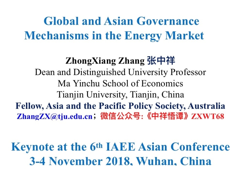 2018年11月2-4日第六届国际能源经济学会(IAEE)亚洲大会在武汉召开。本次大会分别在开幕和闭幕安排了两场大会报告。芬兰阿尔托大学商学院Timo Kuosmanen教授,麻豆传媒a片 马寅初经济学院院长,国家能源、环境和产业经济研究院院长张中祥教授和日本能源经济研究院院长兼首席执行官Masakazu Toyoda应邀在开幕大会上做主旨报告。同时张中祥教授还主持了闭幕大会主旨发言,由国际能源经济学会副理事长Ronald Ripple教授和香港理工大学David Broadstock教授分别做了主旨报告。