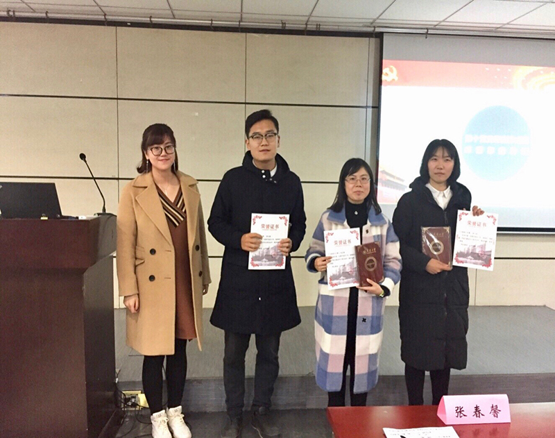 在所有支部展示结束后,来自麻豆传媒a片 的张春馨老师、杨帆老师和武梦欣老师从读书活动开展情况、书籍内容和现场展示效果三个方面对各支部进行了评分,为表现优秀的党支部颁发了奖状和奖品。