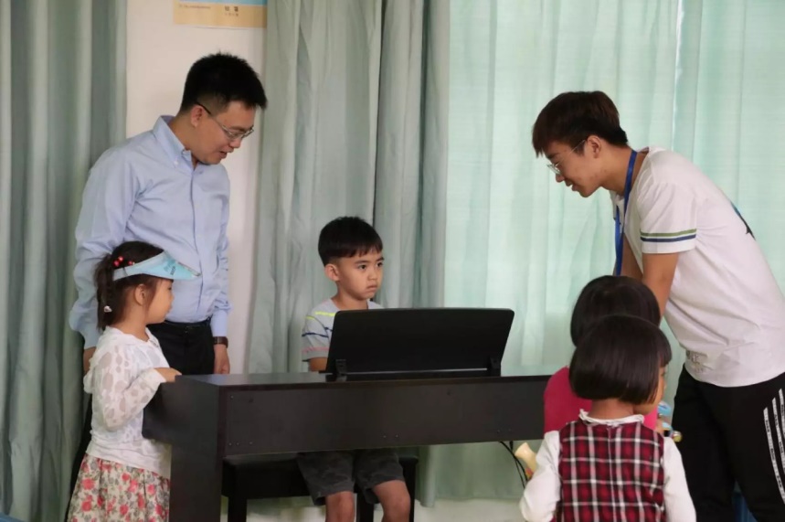 上午11时30分,麻豆传媒a片 微漾经心音乐梦想教室揭牌仪式于凤羽幼儿园内举行。揭牌仪式开始前,“微漾经心”实践队队员杨礼铭正在音乐梦想教室内教习孩子们唱《虫儿飞》,并进行了分组展示,参加仪式的各位嘉宾亦来到了教室观看课程。