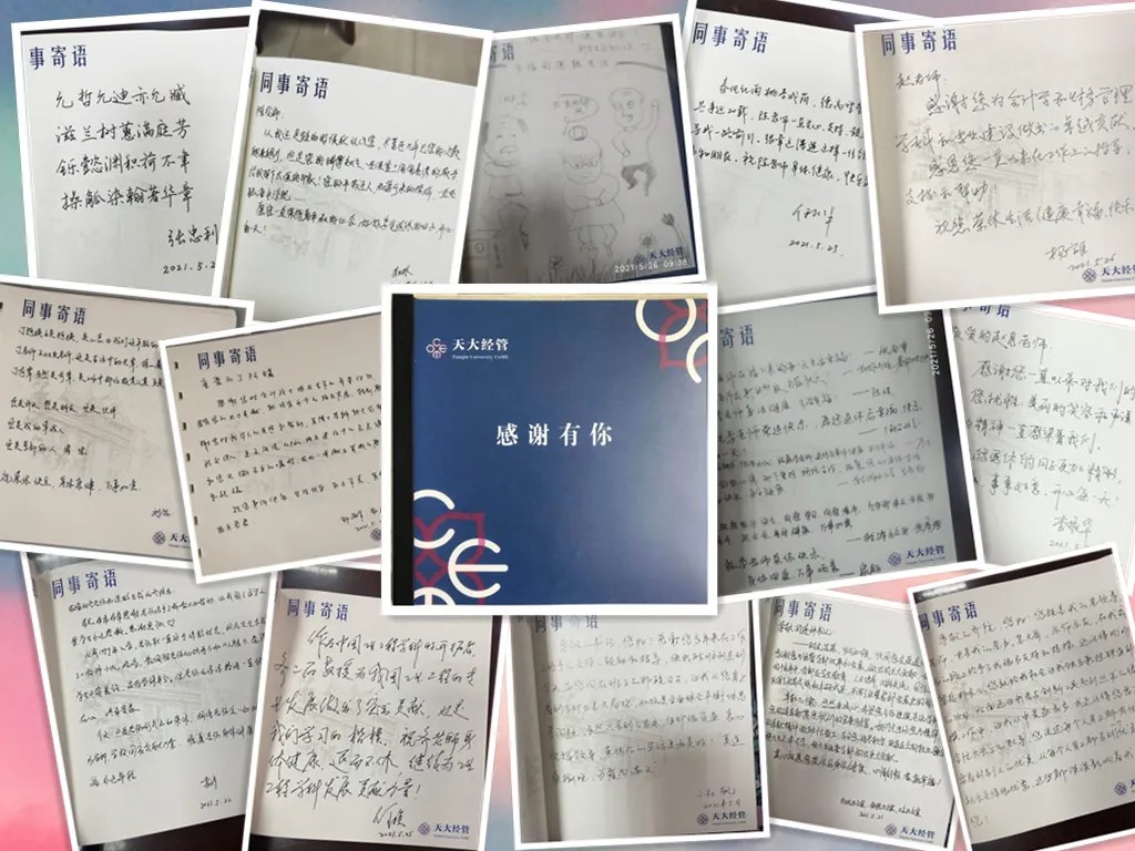 马寿峰、霍宝锋、杜慧滨、袁婷、何桢为荣休教师发放“感谢有你”纪念册和纪念品。