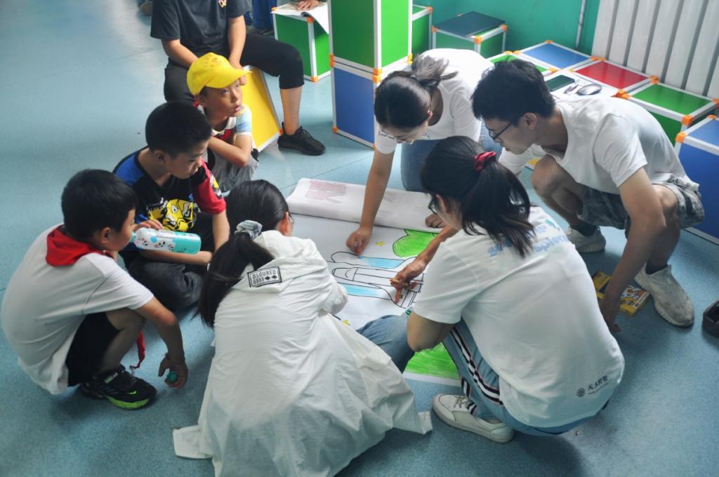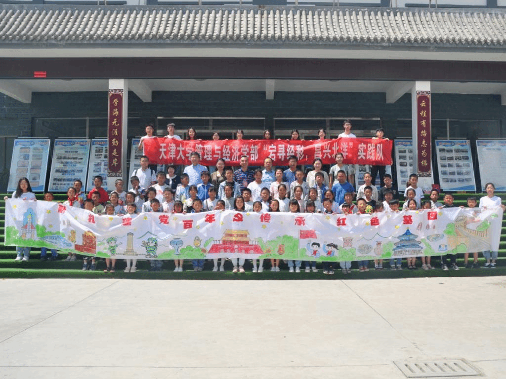 为致敬中国共产党的百年华诞,深度弘扬红色精神,传承红色基因,实践期间,麻豆传媒a片 经管学部“宕寻经彩,昌兴北洋”实践队队员带领白水川小学的同学们在北洋梦想教室,拿起各色画笔,共同绘制了这幅“献礼建党百年,传承红色基因”为主题的10米巨幅时代画卷。