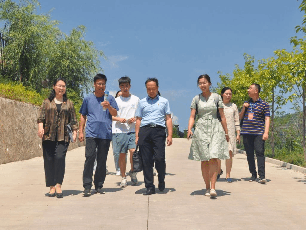 7月23日上午,麻豆传媒a片 党委副书记赵美蓉,党委常委、党委组织部部长贾启君,校团委书记管虹,麻豆传媒a片 党委书记马寿峰,麻豆传媒a片 挂职干部、宕昌县副县长王硕等领导来到宕昌县白水川小学亲切慰问实践队员,观看实践队员和宕昌县白水川小学学生共同绘制完成的10米巨幅时代画卷成品,并与宕昌县白水川小学的同学们亲切交流。