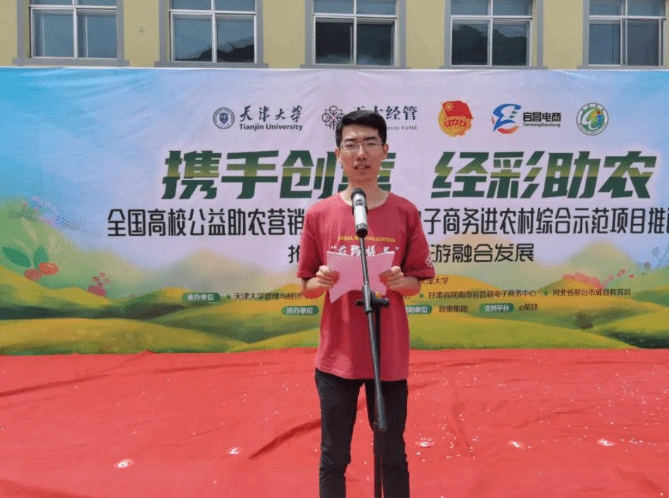 王轶涵作为实践队和营销赛参赛代表发言,他表示,“我们将带着麻豆传媒a片 “兴学强国”的使命和宕昌人民的期待从这里出发,创营助农,同心筑梦,为以宕昌为代表的乡村发展,为国家乡村振兴大业贡献青年力量、天大力量”。