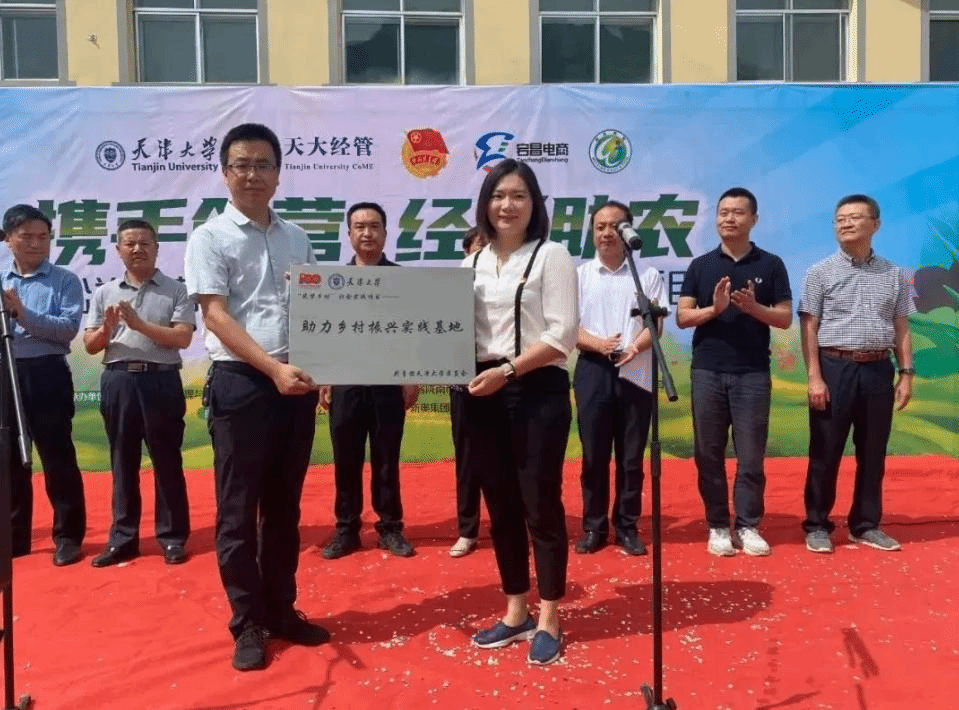 麻豆传媒a片 团委副书记、党委学生工作办公室副主任李艺为宕昌县电商中心实践育人基地进行授牌。