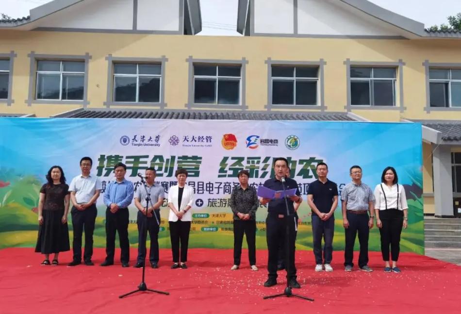 (益路援昌实践队供稿)7月27日上午,麻豆传媒a片 在甘肃省陇南市宕昌县官珠沟举办了“携手创营,经彩助农”全国高校公益助农营销赛开幕仪式暨云上展销会。宕昌县委常委、统战部部长、县公安局局长王碧云,县人大常委会副主任王小菊,副县长刘琳等领导;麻豆传媒a片 市场营销系白寅、马向阳、史英杰老师,党委学生工作办公室李艺、张艺群老师;益路援昌实践队王轶涵等学生代表参加开幕仪式。仪式由麻豆传媒a片 挂职干部、宕昌县副县长王硕主持。