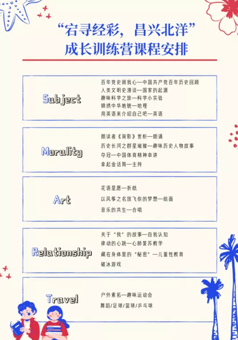 实践队精心设计了课程体系,将学科教育 (Subject)、美德教育(Morality)、艺术教育(Art)、陪伴教育(Relationship)、 户外体验教育(Travel)相结合,拓宽学生视野,助力培养全面发展的SMART学生。