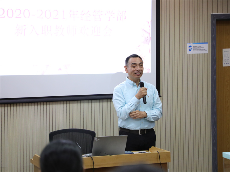 马寿峰在致辞中代表学部向全体教师致以教师节的诚挚问候,对新入职教师加入经管学部表示热烈的欢迎。他指出广大青年教师要以习近平总书记对于教师的重要论述为目标,做有理想信念、有道德情操、有扎实学识、有仁爱之心的好老师。在不断加强师德师风建设的同时,承担立德树人崇高使命,尽快融入到学部的组织文化中,帮助学部不断提升发展。