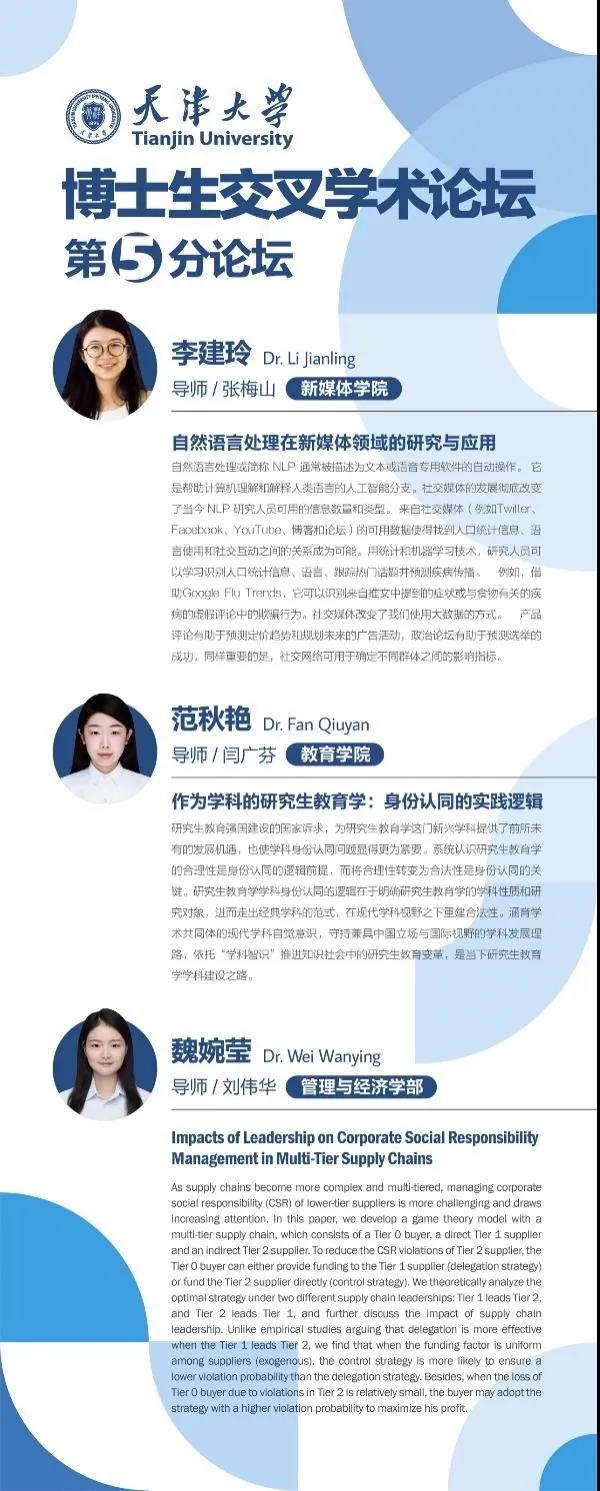 来自经管学部的王璟、王鹏飞、魏婉莹,法学院的王操,教育学院的王佳昕,马克思主义学院的孙春惠,新媒体与传播学院的李建玲,教育学院的范秋艳以及药物科学与技术学院的董心月9名博士生分别进行了不同主题的学术报告,充分体现学科交叉融合。