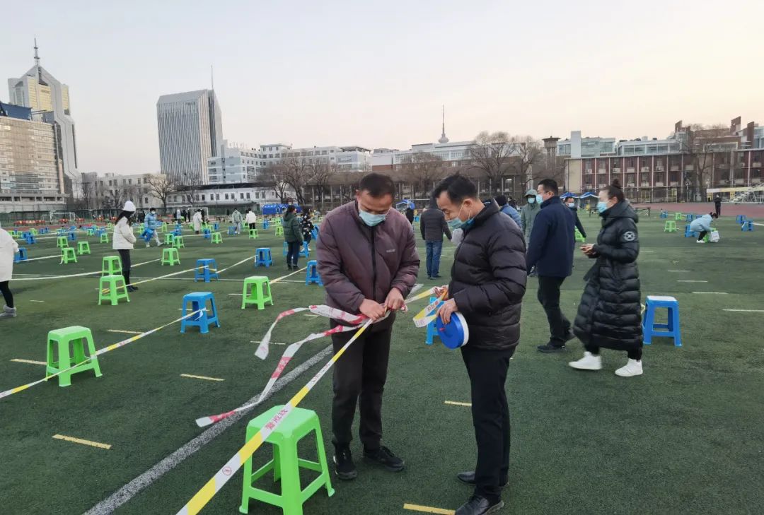 新疆班学员积极主动报名志愿服务工作,与学部本硕博学生志愿者一起冒着严寒,共同协助学校布置核酸检测现场,为天大抗击疫情贡献担当与力量。
