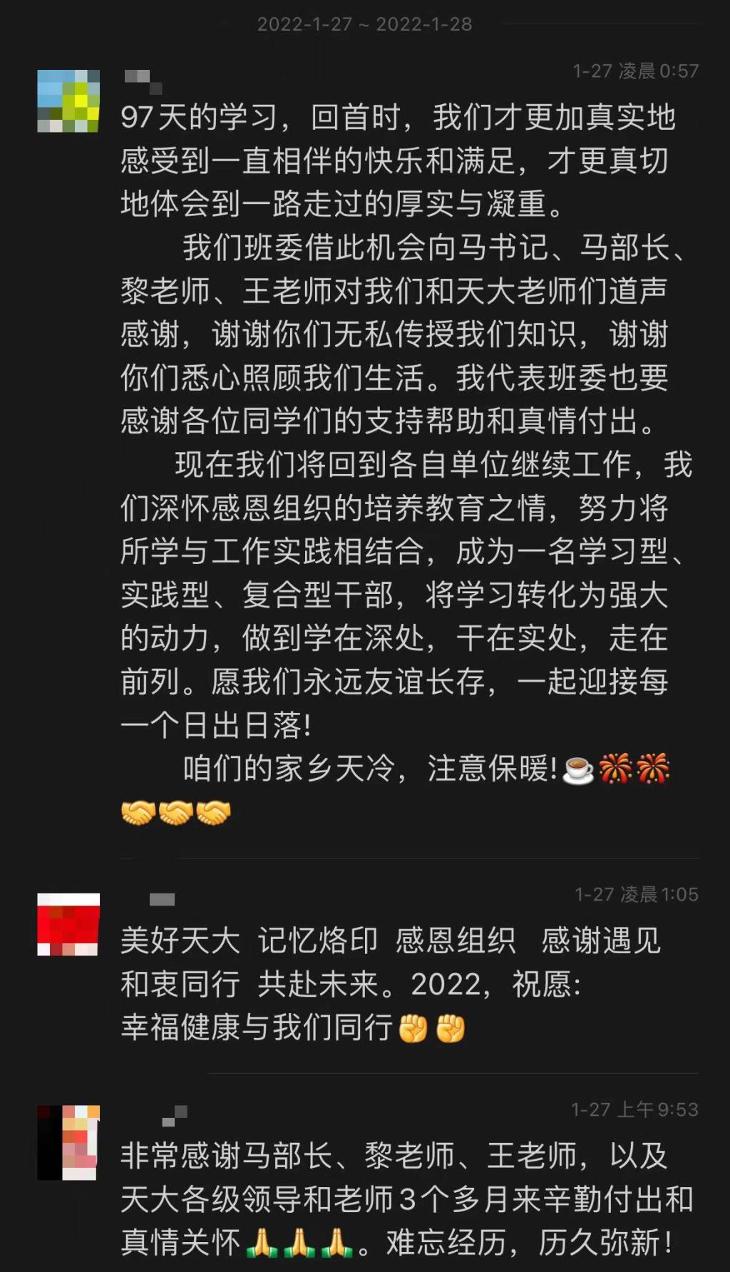 “现在想想在天大的珍贵时光,再次感谢天大,特别是那一句“护送你平安,是天大的事”,满满感动,我们一生难忘的天大三个多月培训经历,我代表47期新疆班由衷感谢经管学部的领导老师们。”