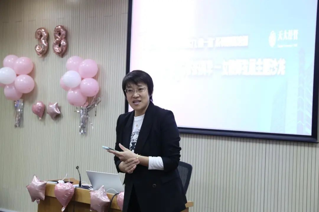 “感谢学部这个专属活动。组织学术和生活都有收获。王雪青老师的十年磨一剑的国家级教材,张俊艳老师对天大社科的辛勤耕耘和各类项目的申报。特别是李莹老师的穿戴搭配讲座很实用,对于我们出席各类会议、讲课和生活的服装搭配,有更多借鉴。总之,3.8节很开心!”——郭焱