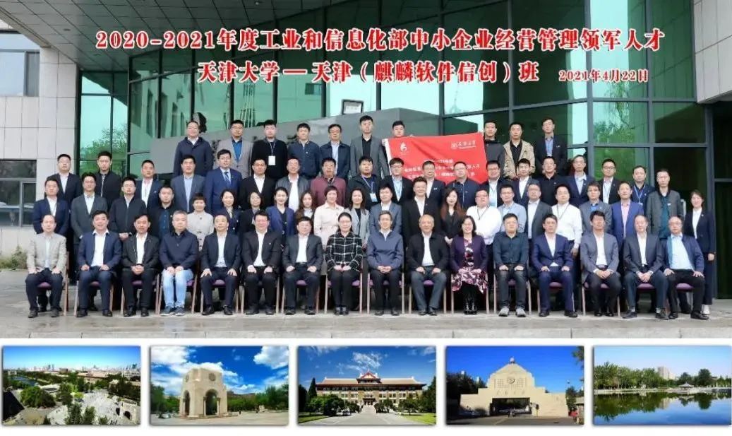2021年4月22日,2020-2021年度工业和信息化部中小企业经营管理领军人才麻豆传媒a片 -天津(麒麟软件信创)班开班仪式在麻豆传媒a片 卫津路校区隆重举行。
