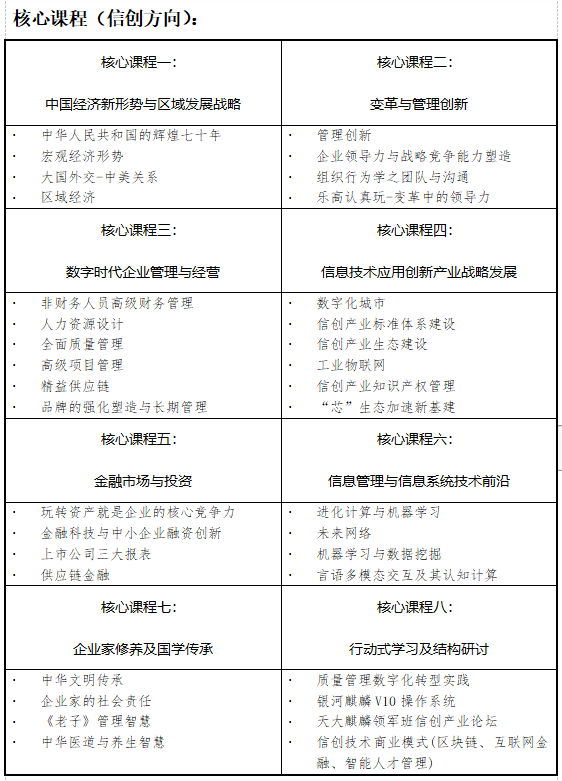 重全面,多维课程铸就广角提升—课程涵盖国家发展政策解读、智能制造案例、精益管理、人工智能、大数据、资本运营、国学智慧、营销管理、财务管理、人文素养、艺术鉴赏等各模块。课程以通过真实及仿真案例,使学员在整个课程中,通过头脑风暴,沙盘模拟,实地考察,小组讨论等形式,培养出能真正为企业解决问题的领导人才。