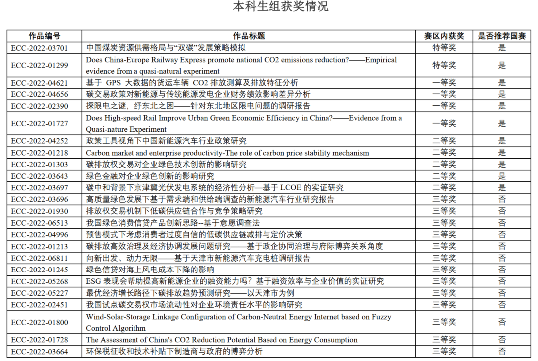 根据大赛设奖规则和决赛答辩成绩天津赛区组委会评选出特等奖4项,一等奖6项,二等奖9项,三等奖22项,并确定推荐国赛的参赛作品。按照国赛25%遴选规则,筛选出19项作品推荐参加国赛。天津赛区获奖作品及推荐国赛作品详见下表: