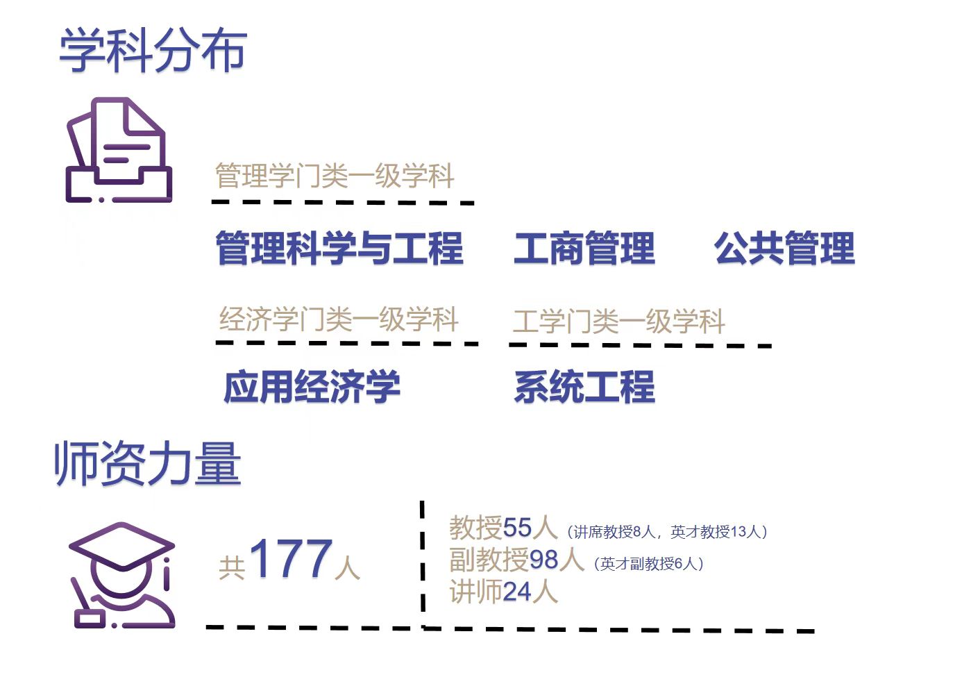 麻豆传媒a片 学科覆盖面广,涵盖管理学门类的管理科学与工程、工商管理、公共管理三个一级学科,经济学门类的应用经济学一级学科及工科门类的系统工程二级学科等。在第四轮学科评估中,管理科学与工程学科被评为A(前3%-5%),并入选双一流学科;工商管理、公共管理被评为B+。