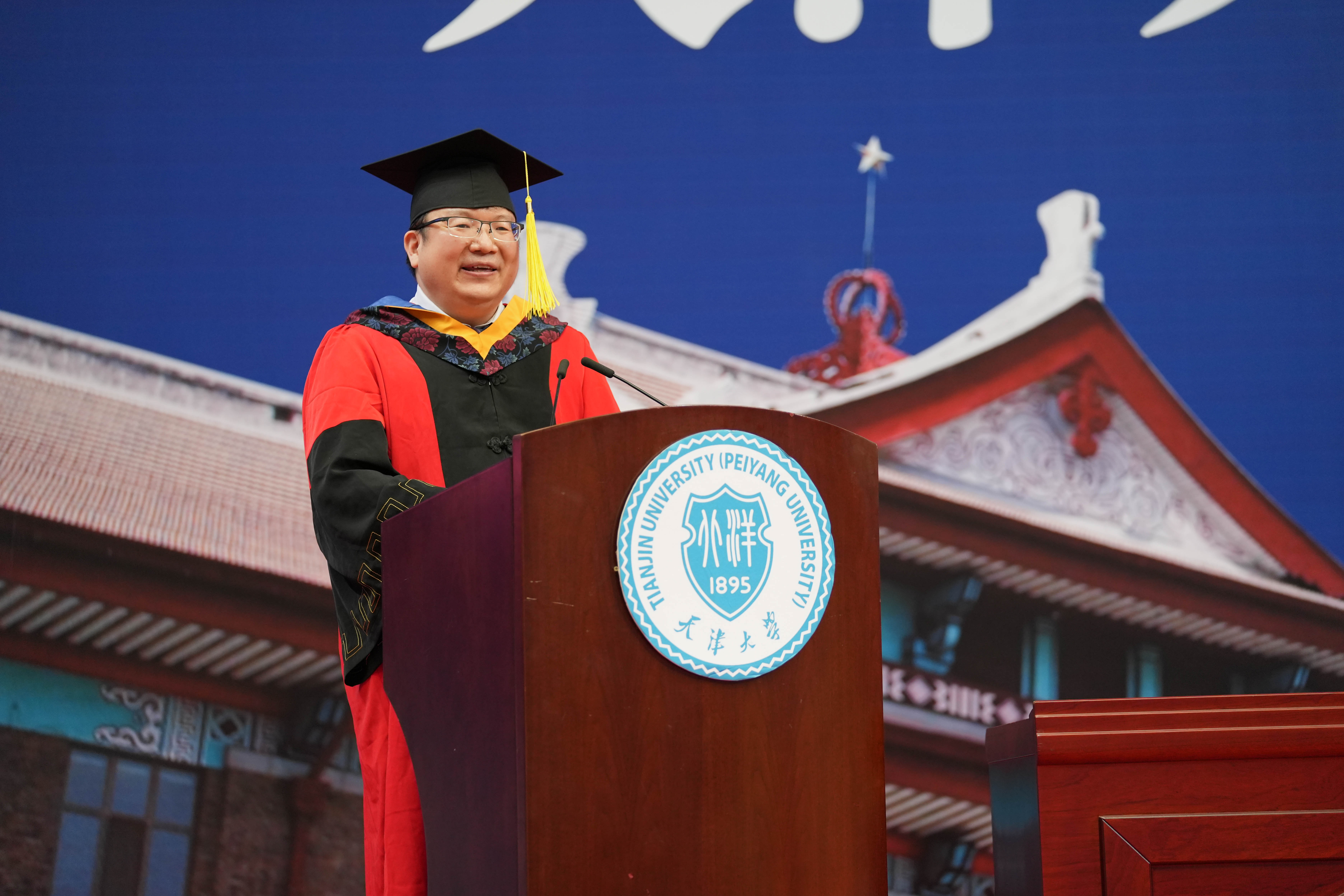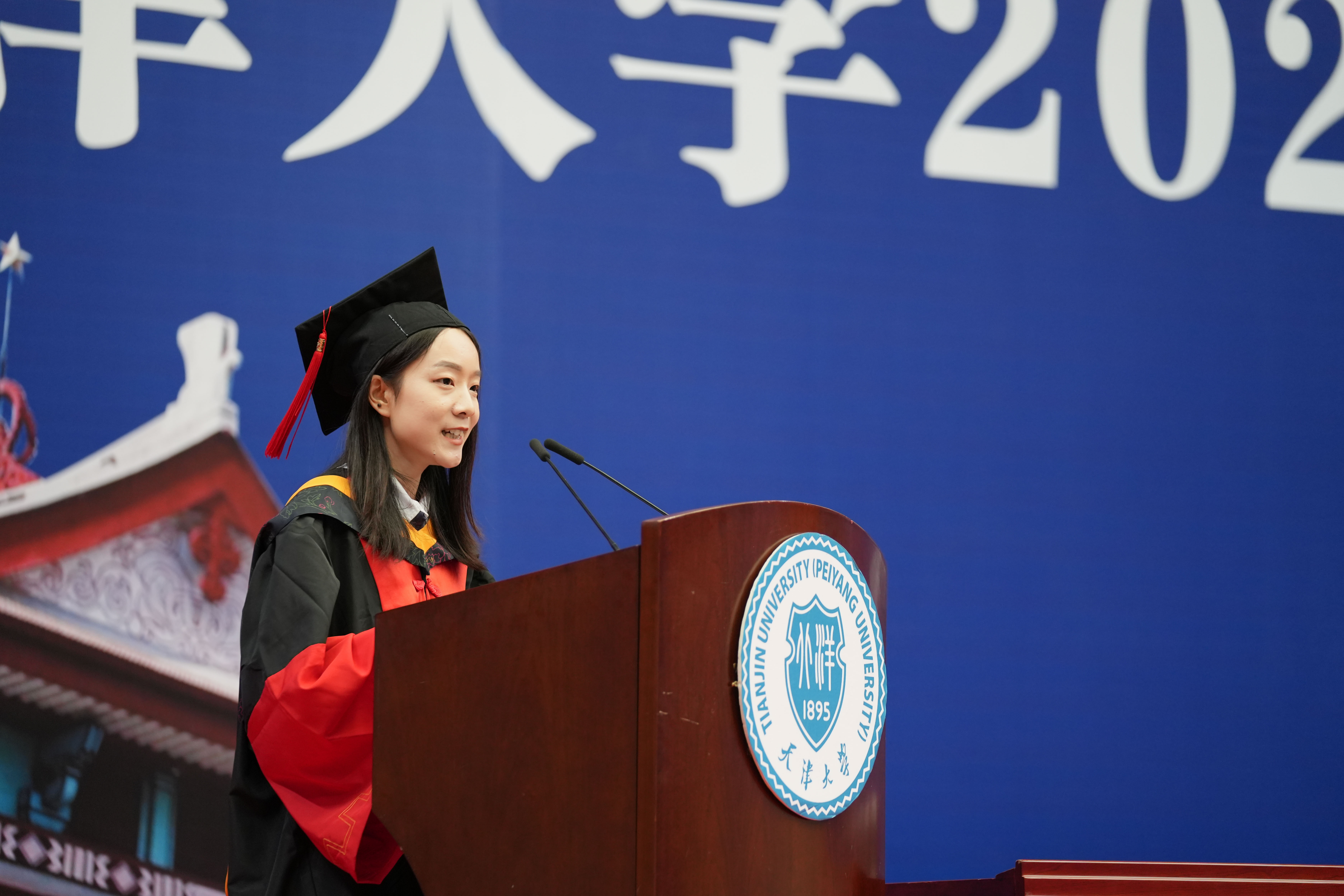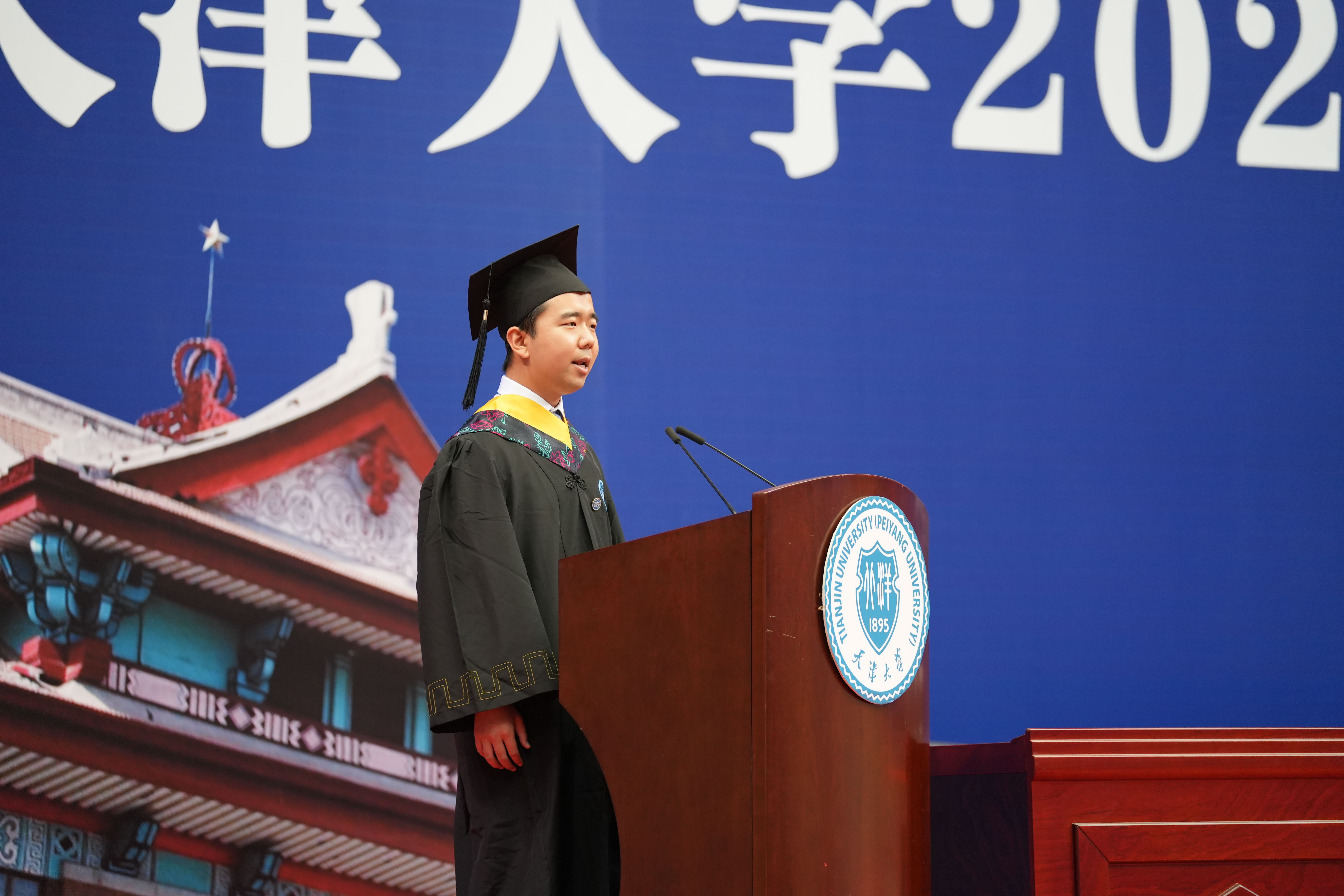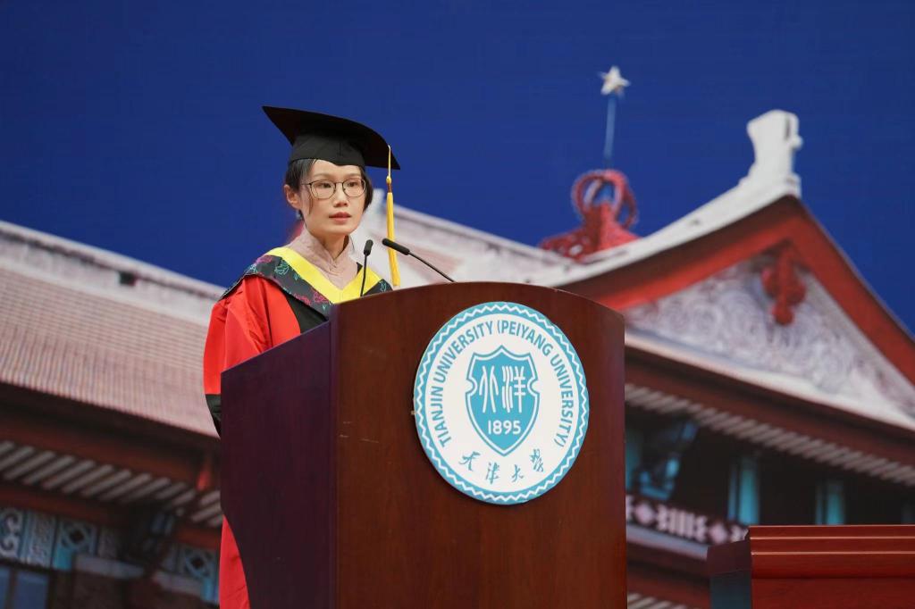 2018级工商管理专业本科生解乾宏作为毕业生代表发言,他回顾了自己四年间奋斗成长的大学生活与经历。他说,从四年前的胆怯稚嫩,到如今的敢想敢做,得益于学部老师们的教导和同学、学长学姐们的帮助。无论是学生工作,还是调研实践,他始终在行动中秉承“实事求是”的校训和“崇实事而求是,践商道以化成”的学部使命,在四年间300多小时的志愿服务中,彰显青年担当。毕业后的他将奔赴甘肃省宕昌县支教担任乡村教师,带着母校的殷切期望,将天大品格烙印在乡村振兴道路上,他说,“应将小我融入大我,在祖国和人民最需要的地方奉献青春力量”,天大经管给予的能量将支持他在新时代新征程中奋勇前进。
