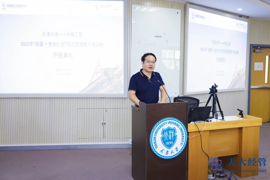 毛照昉代表学部欢迎中核工程项目管理部和华东分公司各位领导与学员莅临天大经管培训交流。他向各位学员介绍了麻豆传媒a片 的历史及发展历程,麻豆传媒a片 “兴学强国”的使命、“实事求是”的校训、“严谨治学”的校风、“爱国奉献”的精神、“矢志创新”的追求已经深深融入民族复兴、国家富强、人类进步的伟大事业中。此外,他还介绍了经管学部的创立、愿景与使命及学科实力。毛照昉指出,中核集团拥有完整的核科技工业体系,是国家核能发展和核能建设的主力军,肩负着国防建设和国民经济与社会发展的双重历史使命,希望以此次培训为新的合作契机,进一步推进双方校企协同育人工程,深化产教研融合合作。