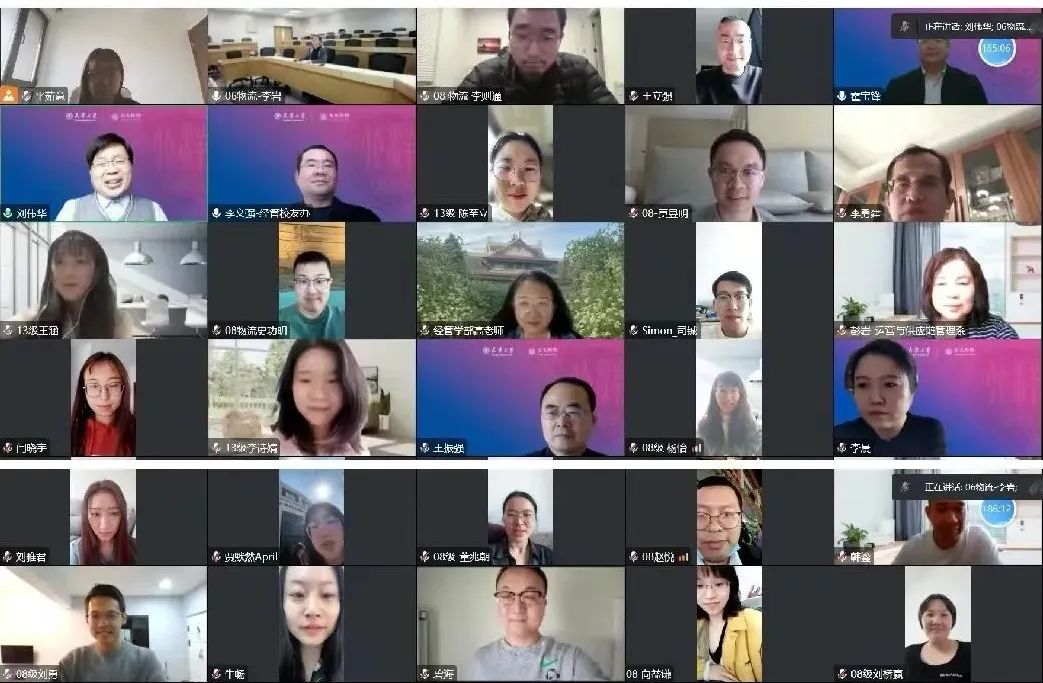 经管学部主任、运营与供应链管理系霍宝锋教授,学部副主任、运营与供应链管理系毛照昉教授,运营与供应链管理系前主任赵道致教授、系党支部书记李波教授、系主任刘伟华教授,以及2008级班导师彭岩老师、2013级班导师霍艳芳老师等受邀参与活动。2007级物流工程专业校友代表韩鎏做主题分享,校友工作办公室主任李文强,2006级物流工程专业毕业生、党务办公室主任李岩等学部行政管理人员参加了本次活动。2008级、2013级以及其他各年级校友和本专业在校生共计近百人线上参会。活动由李岩主持。