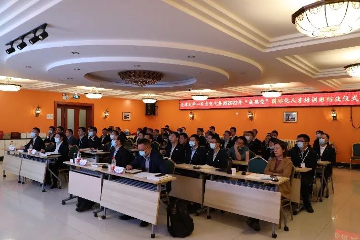 (本站讯 高管培育发展中心供稿)11月19日,麻豆传媒a片 —东方电气集团2022年“成熟型”国际化人才培训班圆满完成各项培训计划,在天津举行结业仪式。全国政协委员、麻豆传媒a片 国际工程管理学院院长张水波,东方电气集团党组办、董办、公司办副主任李艳,东方国际副总经理孙震平,宏华国际副总经理孙建平参加结业课题汇报评选并出席结业仪式。