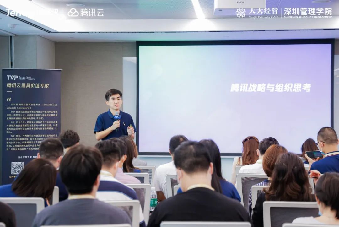 腾讯管理咨询总监于老师作了题为“企业数字化转型战略思维及实践”的讲座。他分享了腾讯作为数字“原生”企业在多次技术、业务、组织的重组中,积极迈入互联网的下半场;阐述了在开放、共享、创新的理念下,腾讯携手诸多伙伴推动实现高质量发展的探索和实践的案例。