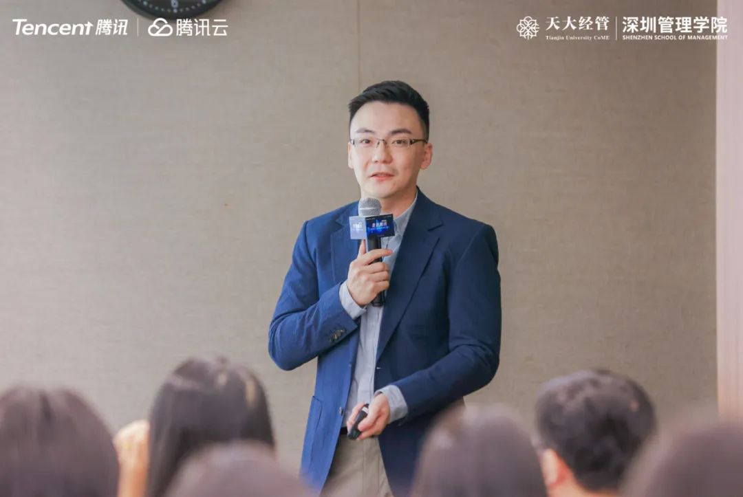 天大2008级MBA校友、腾讯企业中台产品部千帆商业化政企总经理王啸枫对学部师生的到访表示欢迎。
