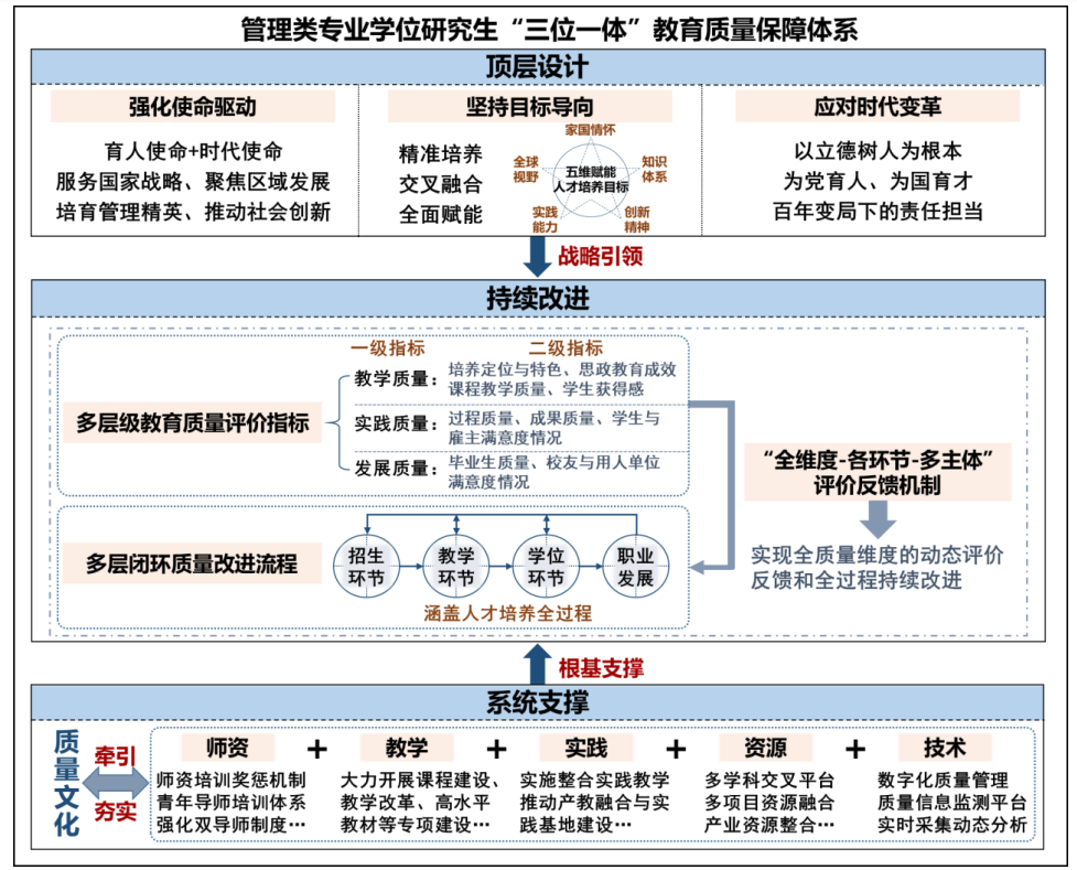 该成果深刻提炼麻豆传媒a片 经管学部专业学位教育30余年改革实践,以立德树人为根本,以应对变革为主线,系统构建了“顶层设计-持续改进-系统支撑”三位一体教育质量保障体系,全面提升了新时代管理类专业学位研究生培养质量,有力推动了管理类专业学位教育高质量内涵式发展。