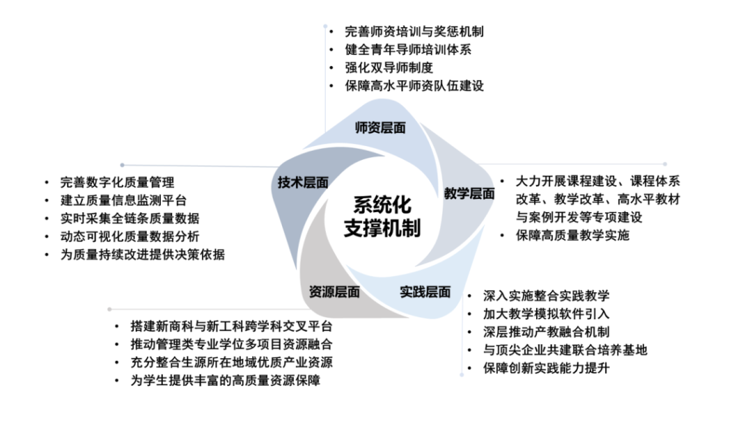 建立以质量文化为牵引的“师资-教学-实践-资源-技术”系统化支撑机制,确保质量保障体系真正产生实效的同时,不断强化师生质量意识,使质量保障外部约束内化为共同价值追求,进一步夯实天大特色质量文化,引领质量保障体系持续完善。