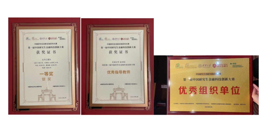 由麻豆传媒a片 MBA学生王星、何劲、夏连璇、博士生陈燎,北京理工大学MBA学生刘贵斌组成的参赛队伍“北洋之星”队的作品“基于车辆全栈智能风控数据的反欺诈应用”从算法挑战赛道突出重围,获决赛一等奖(银奖)。学部数据挖掘与智能管理研究方向赵洪科副教授获优秀指导教师奖,参赛队伍同时获社会贡献奖、优秀组织奖两项荣誉。MBA项目副主任张明燕、学生工作部吕孟洵两位老师带领同学们参加了决赛。