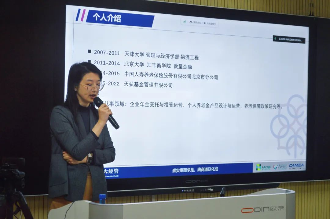 李文强做校友工作介绍。他指出,“链接、赋能、共创、成就”是校友办公室一以贯之的“CECA工作体系”。为加强校友与母校之间的情感沟通,校友办公室特别设立校友联络员职位,同时开设“天大经管校友之家”公众号,定期向校友发送校友工作简讯、生日祝福卡,发送贺卡贺信,做好情感链接。建立终身学习体系和终身服务体系,整合学部内外各类资源,共同推进校友工作,助力学部发展。