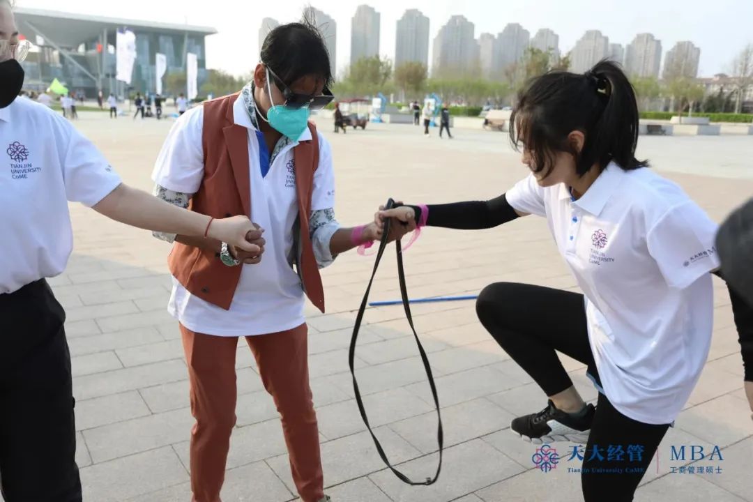 4月1日,伴随着清晨的旭日,沐浴着和煦的春风,满载500名师生的10辆大巴车驶往活动地点——位于天津市滨海新区的渤龙湖公园。到达活动现场后,拓展教练首先通过协作热身、共创班旗等环节使同学们迅速破冰,班级氛围愈发融洽。随后的训练中,同学们以小队为单位开始了“竞技”,群龙取水、不倒森林、能量传递、一圈到底、蛟龙出海、激情节拍等环节,让大家在活动的同时,不但增强了班级凝聚力、向心力与团队协作能力,也激发了同学们的斗志与胜负欲。