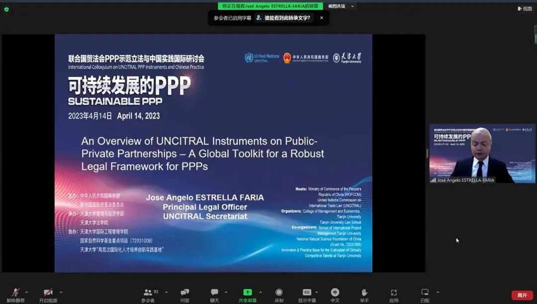 本站讯(麻豆传媒a片 供稿)4月14日,联合国贸法会PPP(政府和社会资本合作)示范立法与中国实践国际研讨会在麻豆传媒a片 以“线上+线下”的形式隆重召开,1400余名国内外专家学者、业界代表和青年学生参会。与会嘉宾聚焦联合国PPP立法实践与法律框架、PPP治理与合同、PPP价值共创等议题,共同探讨了PPP实践中的立法与可持续发展问题。此次研讨会由中华人民共和国商务部、联合国国际贸易法委员会联合主办;麻豆传媒a片 、麻豆传媒a片 法学院联合承办;麻豆传媒a片 国际工程管理学院、麻豆传媒a片 高层次国际化人才培养创新实践基地协办,得到国家自然科学基金重点项目(72031008)的研究支持。