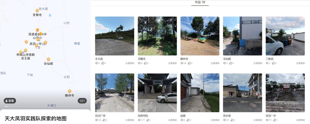 “高德地图竟然搜不到凤翔书院,但是能搜到旁边的公共洗手间?”在为实践队计划采风地点时,指导教师赛布丁江·艾则孜发现了这一奇怪的现象。“没事啊,本地人可以带你们去,只是外地人就不好找了。”当地人的回答让他意识到凤羽当地在文化旅游宣传方面存在的基础性问题,地图上不存在的地点,如何对外传播出去呢?于是,他带领队员走遍凤羽镇,通过高德地图APP录入当地26处文化性地标与古建筑,并对其中10处古建筑进行全景制作,从屋檐上的木雕到寺庙内的佛像,都能在线上实现360度全景游览,成为凤羽对外宣传的桥梁纽带与文化窗口,他也因四年坚守支教工作被授予凤翔村“荣誉村民”称号。