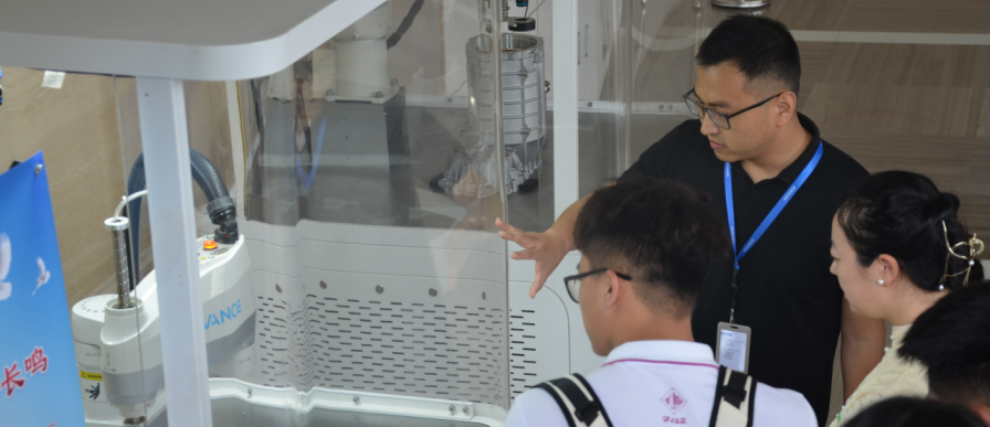 负责人尹洪为带领师生参观了企业展厅,并对公司的企业概况、核心技术以及麻豆传媒a片进行了详细介绍。随后又进行了产品生产车间参观。在这里技术人员向我们详细介绍了自动线和组装线参观生产流程。面对面交流环节,实践队员积极提出心中疑惑,得到了企业负责人的不吝解答。其中,汇川技术的人才培养计划——汇川书院新动力特训营 New Power Training Camp (简称“NPT”)和股权激励机制深受同学们的关注,相信这也是汇川科技可以成为行业龙头的重要原因之一。